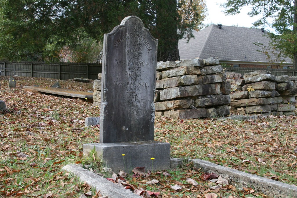 Mt. Nebo Cemetery is located directly across U.S. Highway 11 from Trussville First Presbyterian Church. A historical marker that was once located near the church suggests that the cemetery was founded in 1860, seven years before the church was founded. Sinkler Lathem, who deeded plots of land for the church and Georgiana Davis Masonic Lodge No. 338, is buried in this cemetery. Some possible grave sites here are marked only by rocks.
