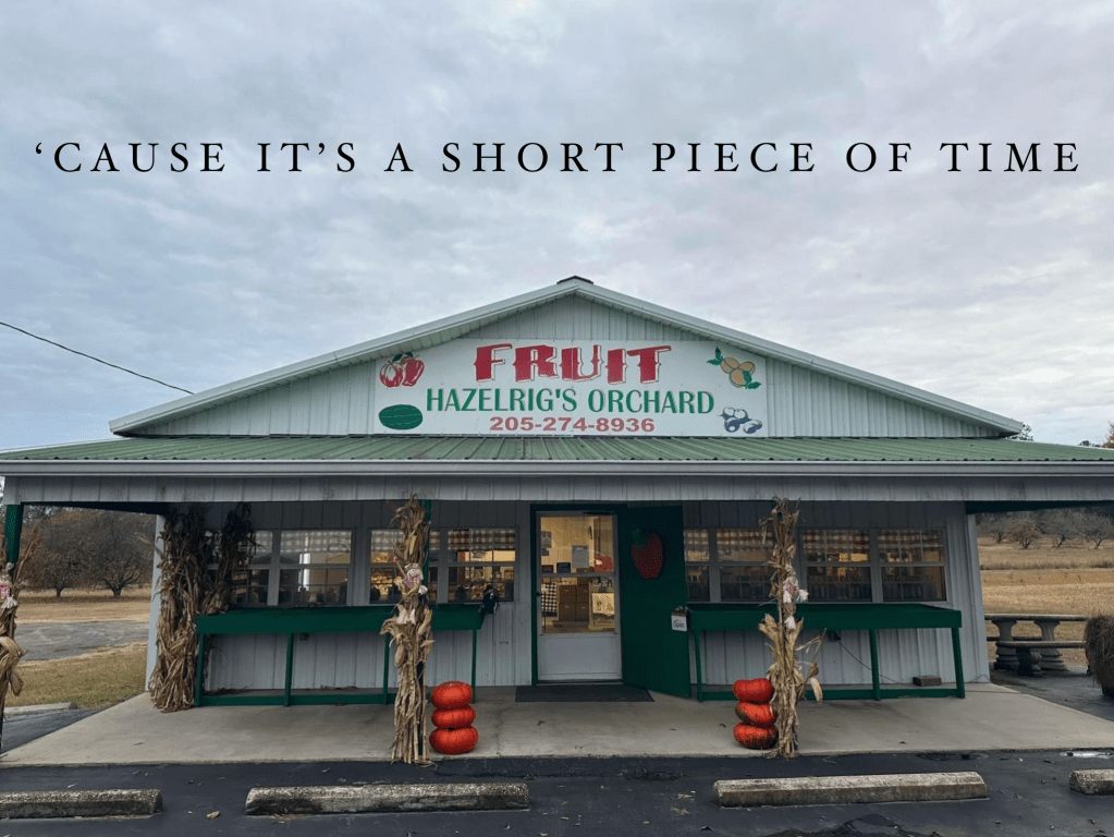 It started with John Carroll Catholic traveling to Fairview in Cullman. I stopped at a Mexican restaurant in Cleveland for a 3:30 p.m. dinner. I had to have time to see more. I drove two-tenths of a mile to Hazelrig’s Orchards, where I perused apples, peaches, jams, cookbooks, and left with a bag of chocolate-covered pecans and a smile on my face after a 45-minute conversation with the co-owner. I took photos of the Locust Fork River at dusk from the King’s Bend Overlook before making my way to Fairview High School, which looks suspiciously like a larger version of Cahaba Elementary School.