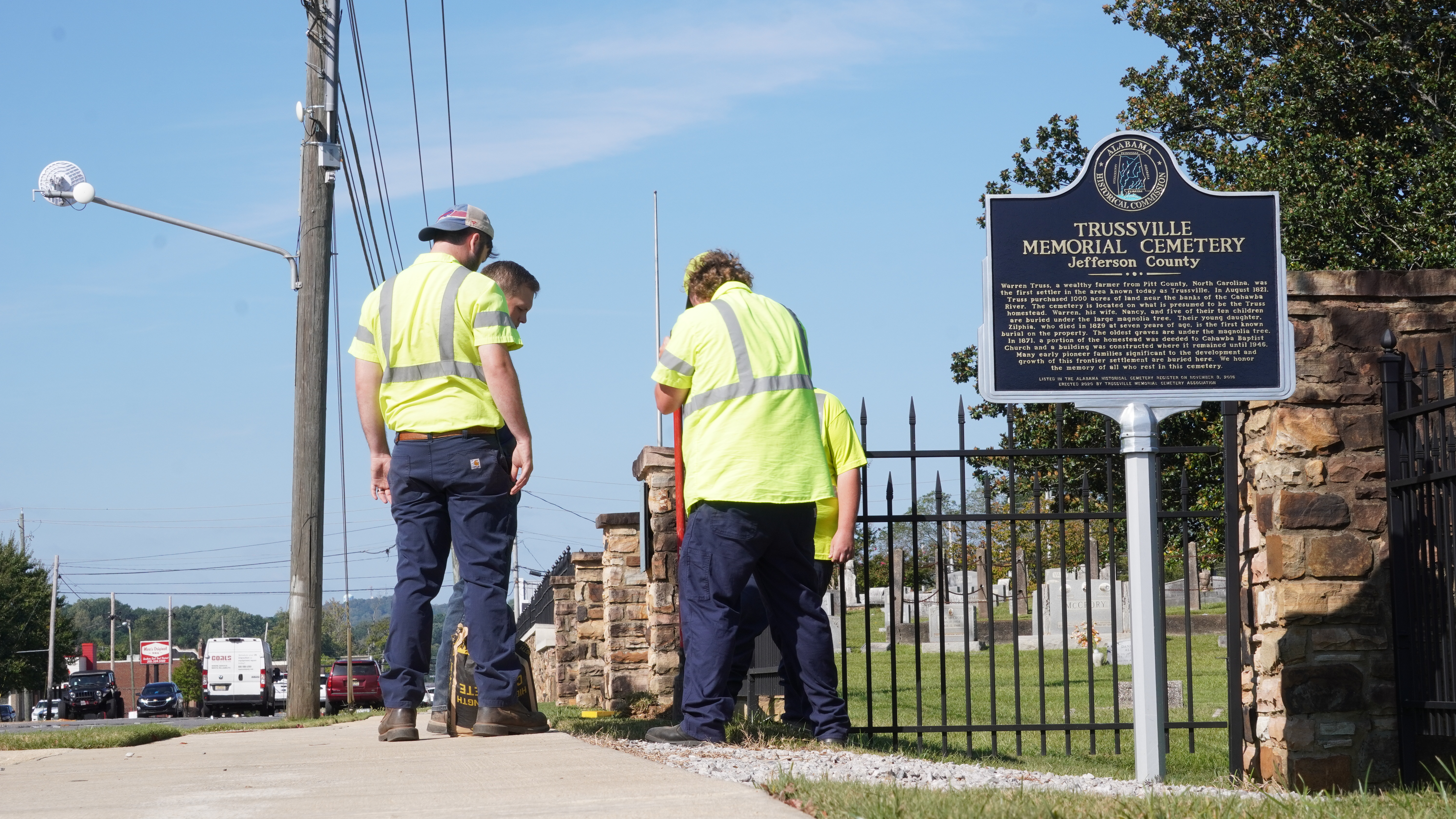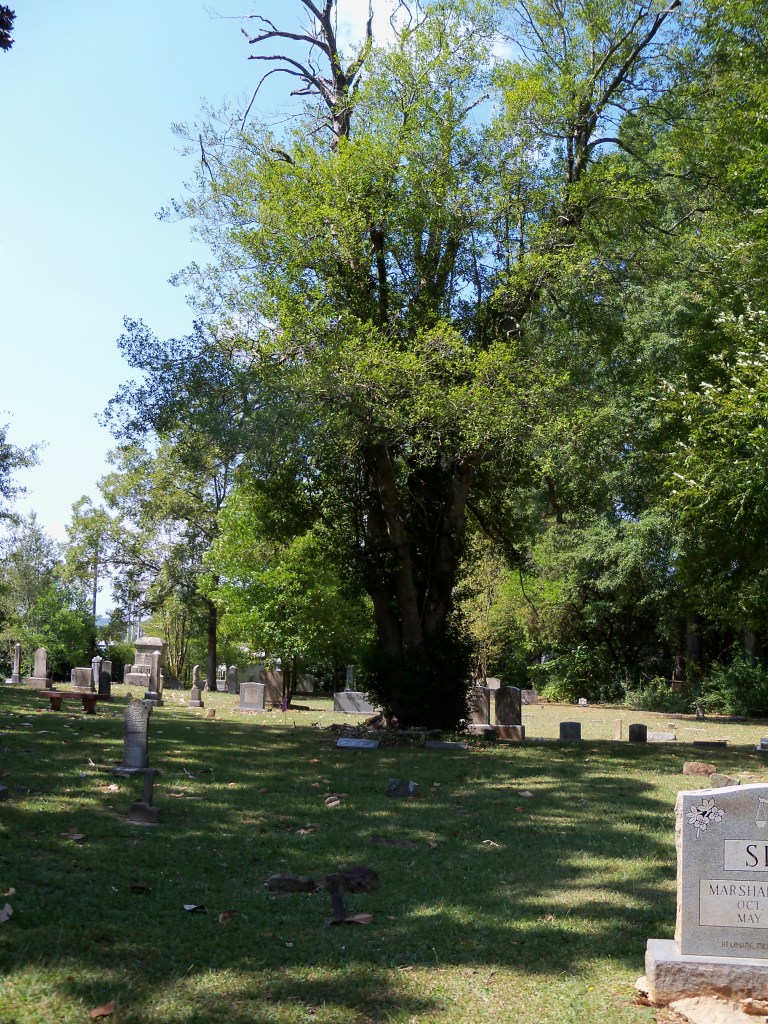 Formerly known as Cahawba Baptist Church Cemetery, it’s one of the oldest cemeteries in the state and serves as the resting place for many members of prominent Trussville families. Near the back entrance once stood Cahawba Baptist Church, though its front steps would have been located in what is now Main Street. There is a low spot that was thought to be filled with water, like a tiny pond, where baptisms took place.